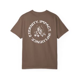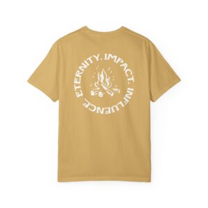 T-shirt featuring “Eternity, Impact, Influence” with fire detail.